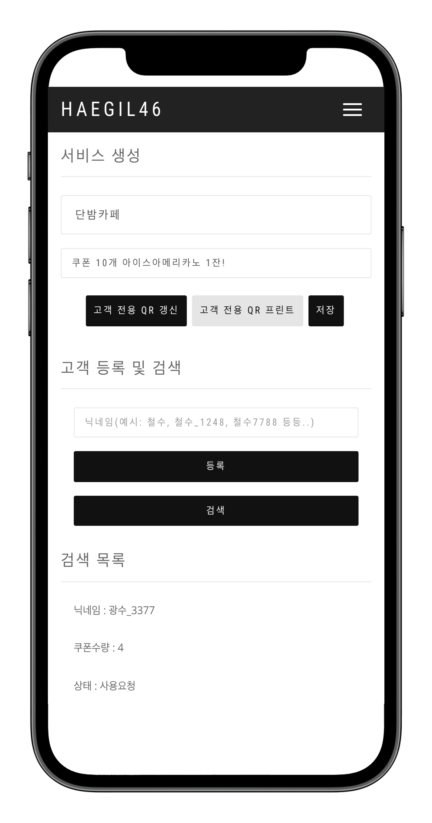 무료 쿠폰관리 서비스입니다. 관리하기 힘든 종이 쿠폰을 대처하고, 쿠폰 추가내역으로고객관리 및 추가 이벤트 가능합니다.